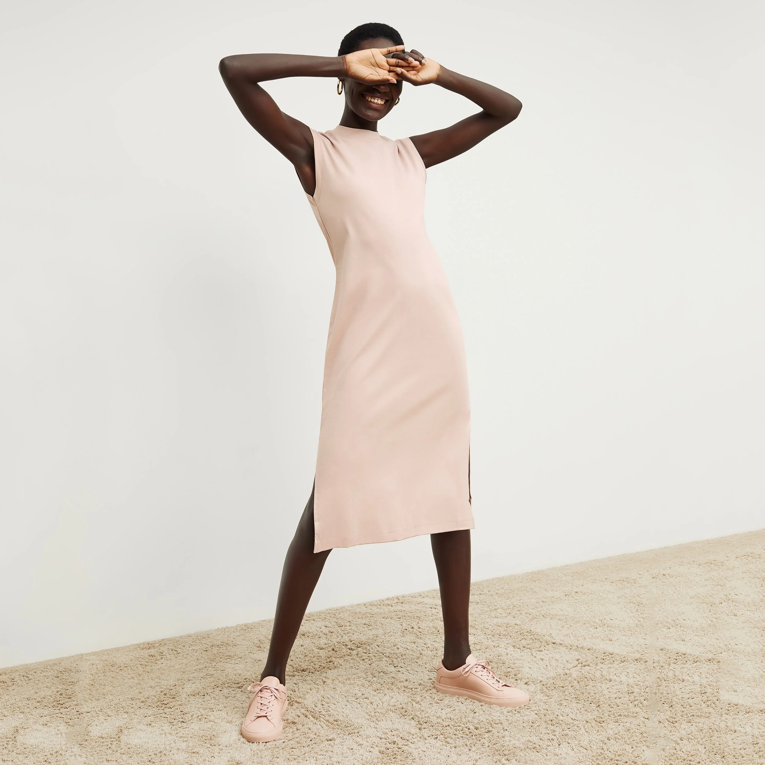 Crafted from our luxurious Peruvian Pima cotton, the Lou is like your favorite T-shirt in dress form. A relaxed fit keeps you comfy all day long, while side slits allow you to move around with ease. Try adding a belt or a cropped jacket if you prefer more structure.