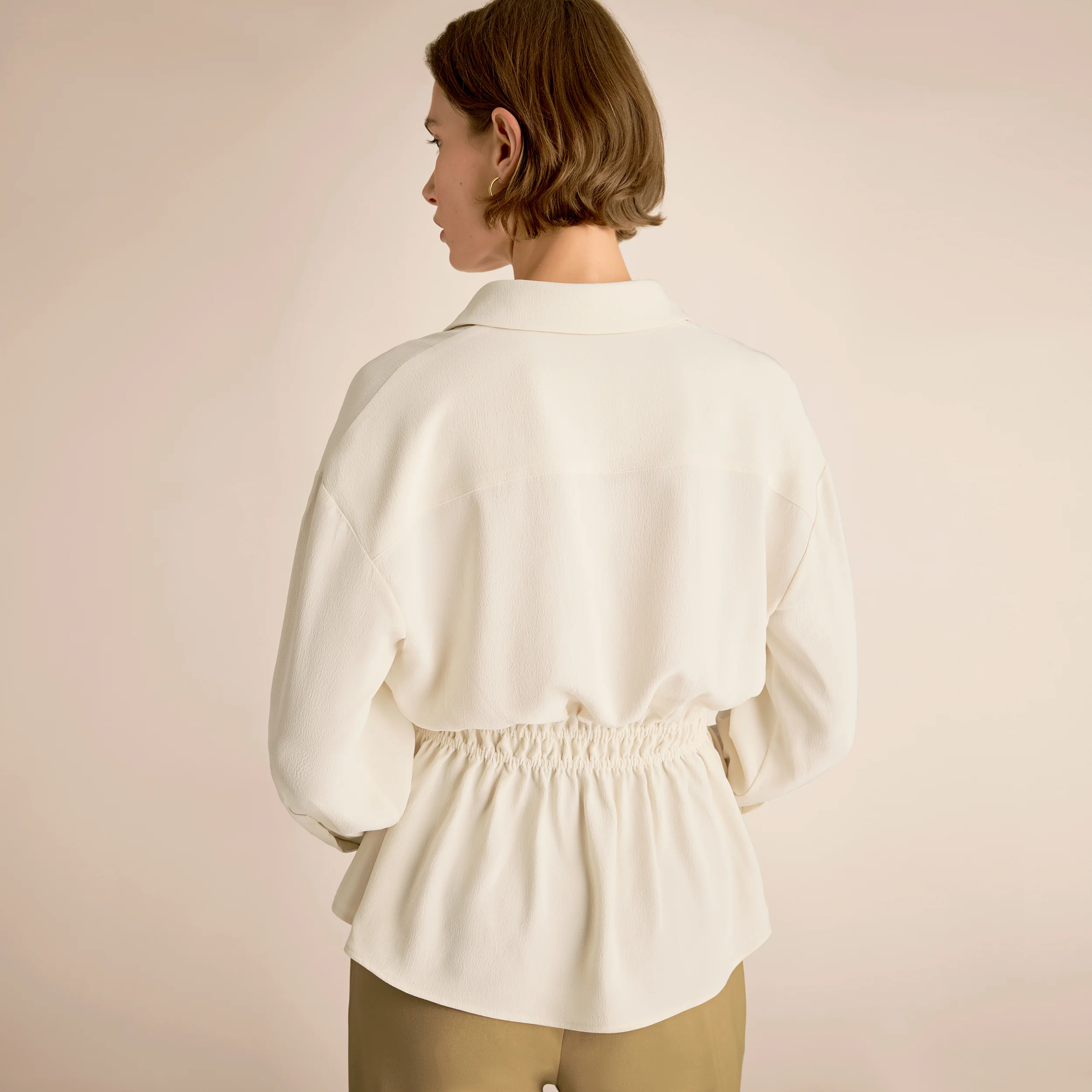 A little bit business, a little bit romantic. Featuring the bones of a button-down and shirring at the waist, the Manning top adds shape to your silhouette and flatters all the right places.