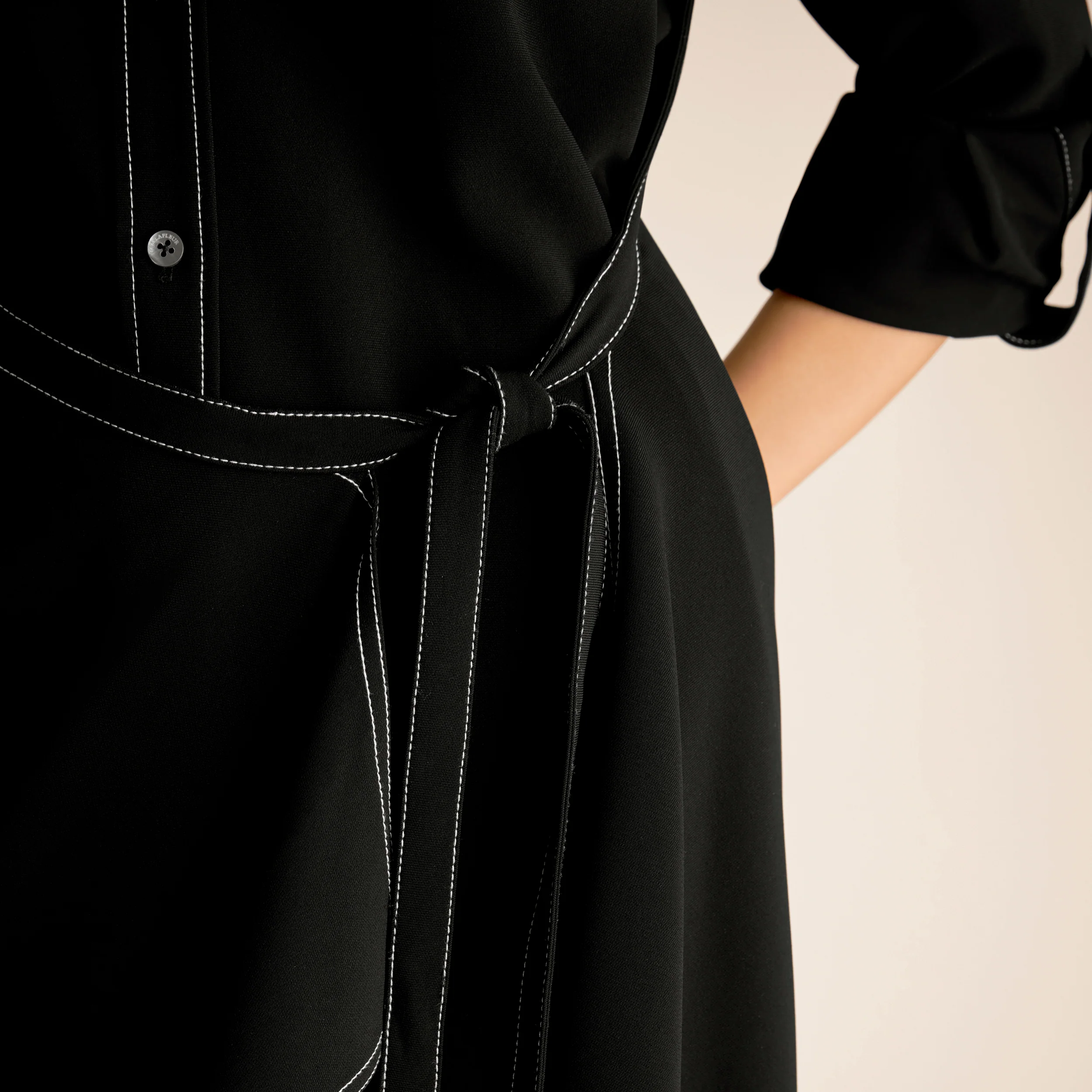 The shirtdress, reimagined. The Taka proves that the details matter: an exposed placket feels intentional, an asymmetric wrap amplifies movement, and clever tabs at the sleeves allow you to customize the length depending on your mood.
